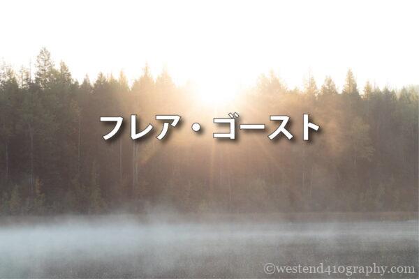 フレアは、強い光によって写真の一部が必要以上に明るくなり白っぽくなる現象で、ゴーストは、光がレンズの絞りの形や楕円形になって写真に写り込む現象このとです。