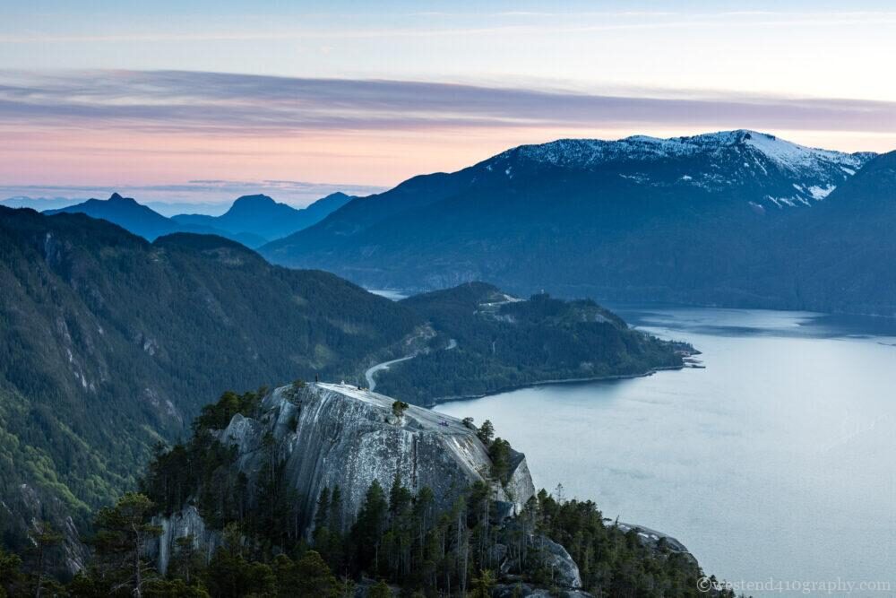 この写真でも前景の岩場と後景の山のサイズ感が崩れた結果、遠近感を上手く構図の中に作ることができています。