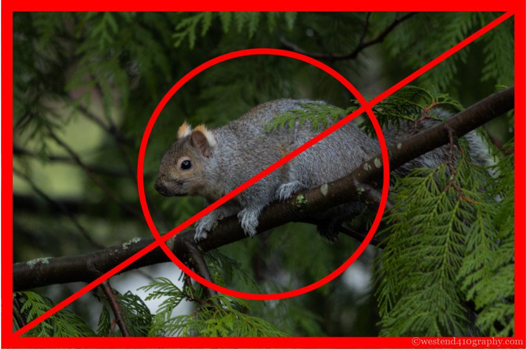 上の作例ではリスが乗っかっている枝を対角線上に配置することで、枝が作る対角線に沿って周りの景色にも視線が誘導される写真に仕上がっています。