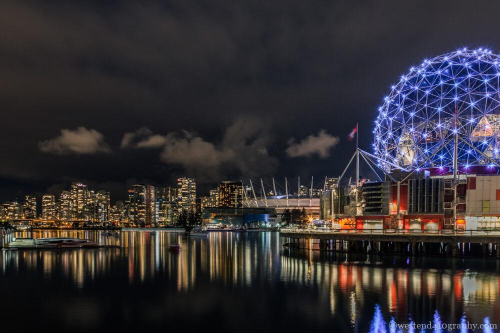 Olympic Villageからは入り江の対岸に位置するバンクーバーのダウンタウンと、Olympic Villageに隣接するScience Worldの夜景を一緒に楽しむことができます。