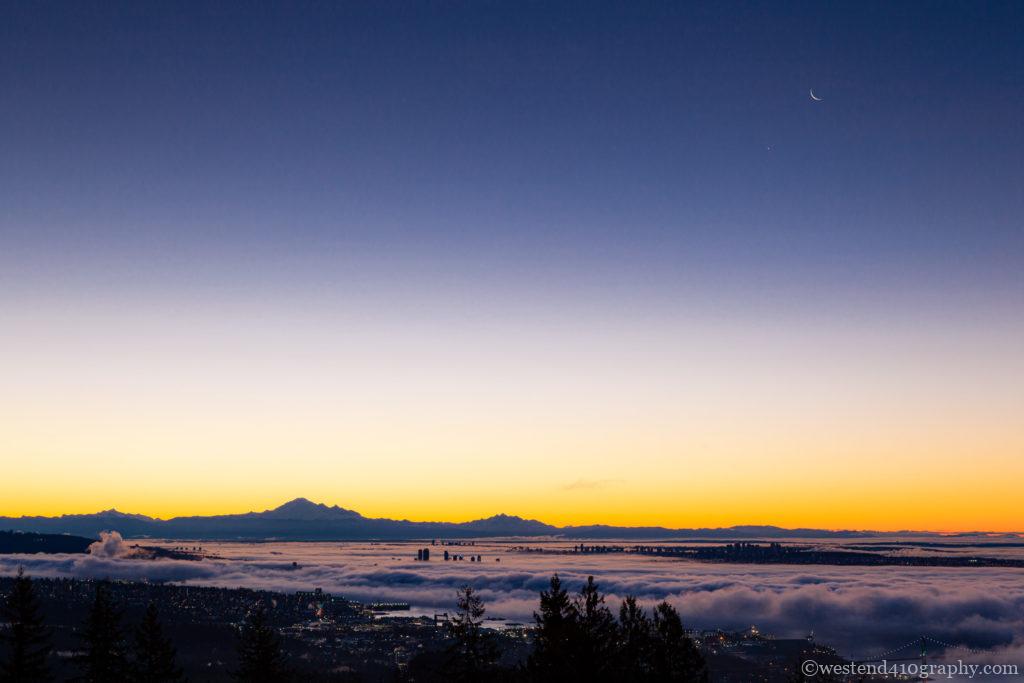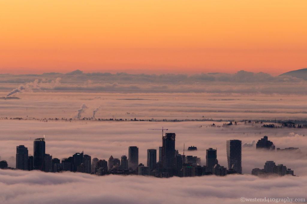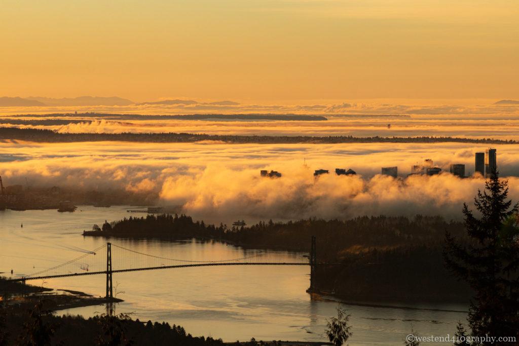 このような条件が揃うことで雲海が発生するので、ここバンクーバーは盆地ではないものの海と運河に囲まれた都心部では、頻繁に雲海が発生しているのです。