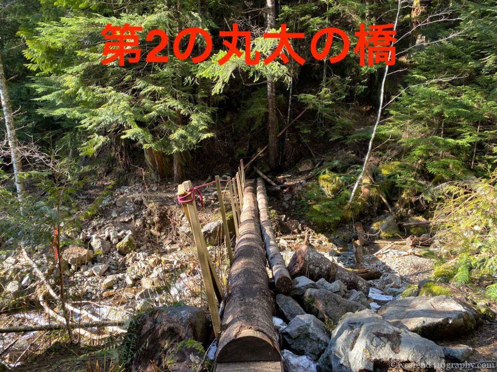 Tunnel Bluffsまでの道のりには、途中2箇所の丸太の橋を渡る必要があります。